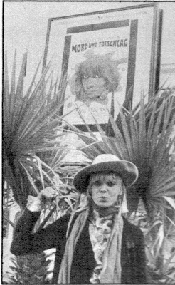 Thus a world star of new wave looks; battered slouch-hat, grubby blouse, washed out jeans and stamped-out boots, Anita Pallenberg (here in front of the five-star hotel "Majestic") became, in Riviera, the "bomb of Cannes."